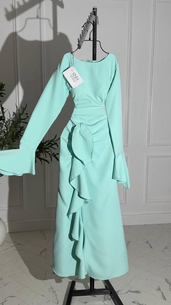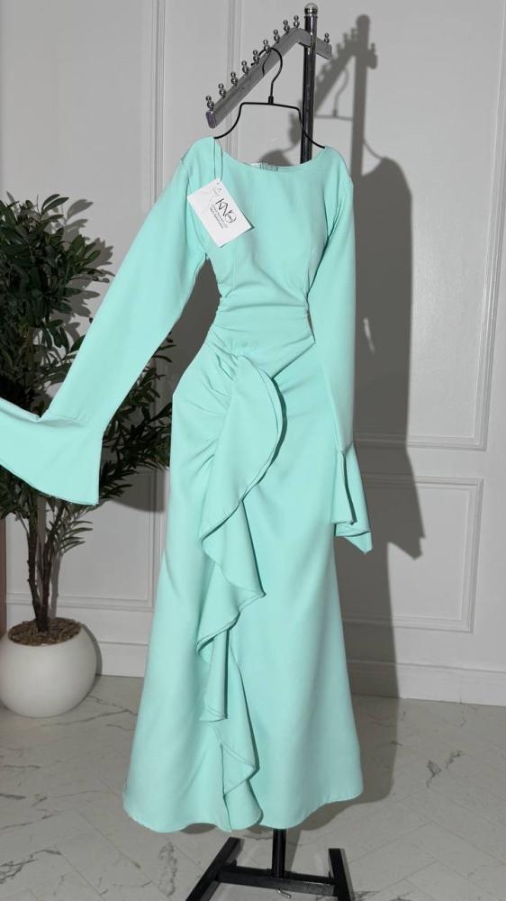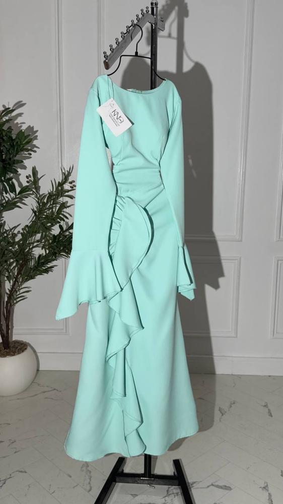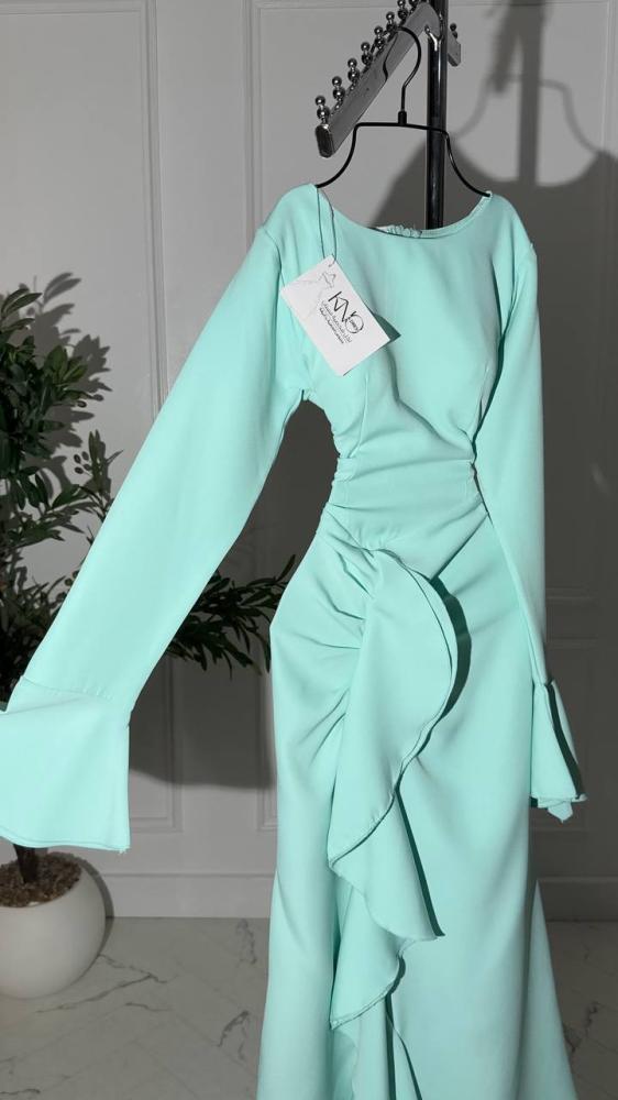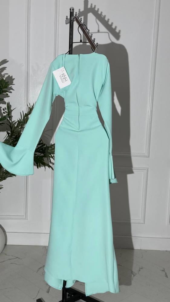 فستان بلون أخضر نعناعي ناعم، بقماش باربي يتميز بلونه الهادئ والراقي الذي يمنح إطلالة أنثوية ناعمة ومشرقة.