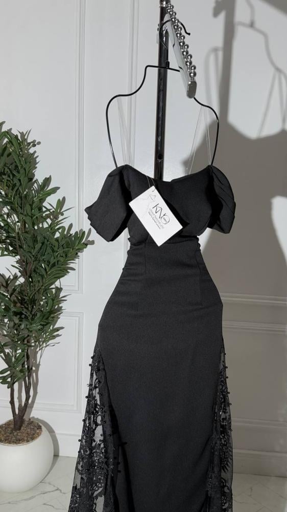فستان ناعم اسود باربي مع دانتيل لول بالجوانب