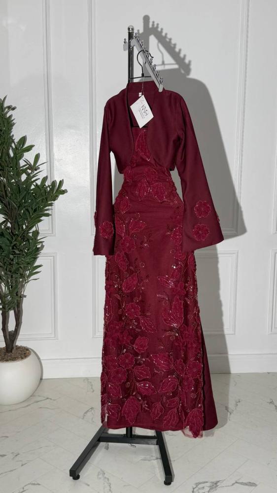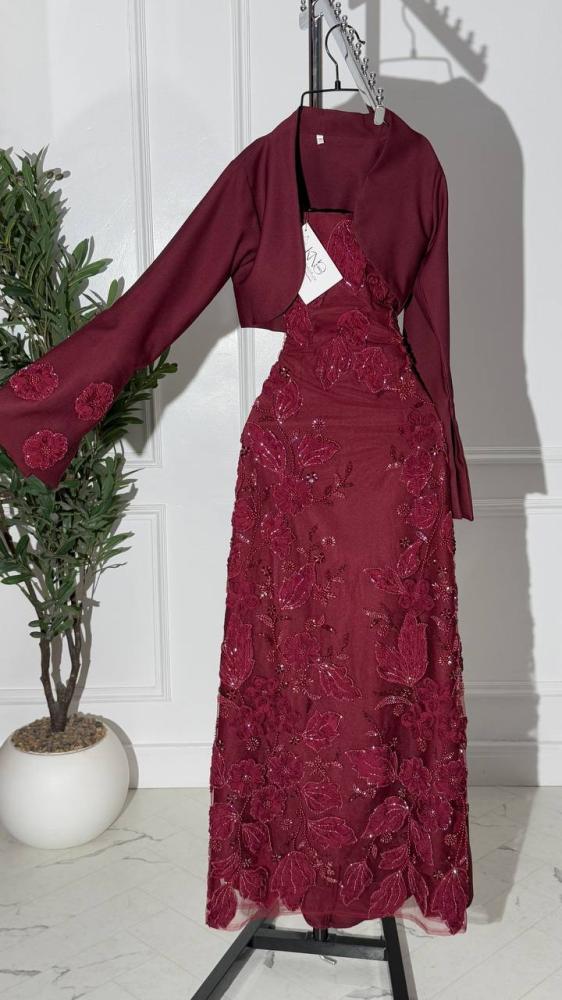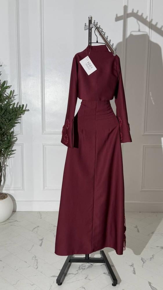 فستان أنيق بلون عودي هادئ ينبض بالفخامة والنعومة، مصنوع من خامة الباربي الفاخرة المعروفة بثباتها ونعومتها، ما يمنح الفستان قَصّة منظمة تُبرز جمال القوام بأنوثة راقية