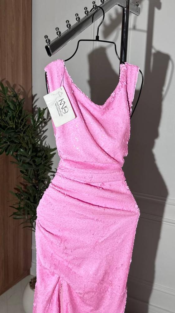 فستان ناعم ماسك ب ترتر وردي مبطن