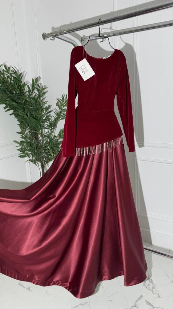 الفستان طوله 60 إنش، وهو مصنوع من مزيج أنيق من قماش الجوخ والتفته، مما يمنحه مظهرًا فاخرًا ومتينًا. يتميز التصميم بتفاصيل فريدة حيث تتزين حوافه بأهداب من الكريستال اللامع، ما يضيف لمسة من الفخامة والجاذبية. يناسب هذا الفستان الإطلالات المسائية والمناسبات الرسمية، إذ يجمع بين الرقي والأناقة في تصميمه.