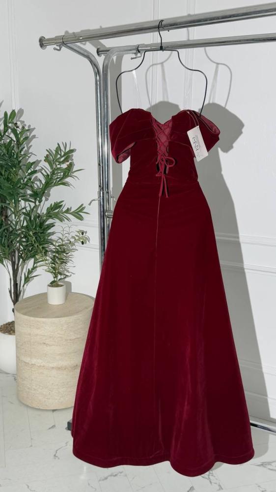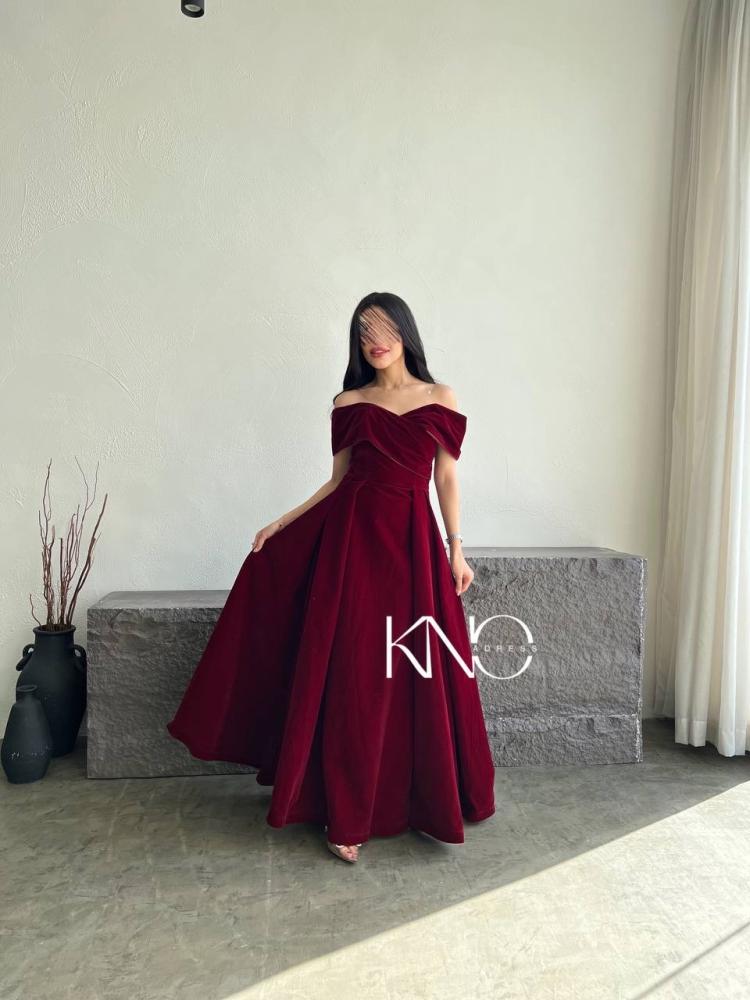 فستان بطول 57 إنش مصنوع من قماش الجوخ الفاخر بتصميم أنيق وبسيط.