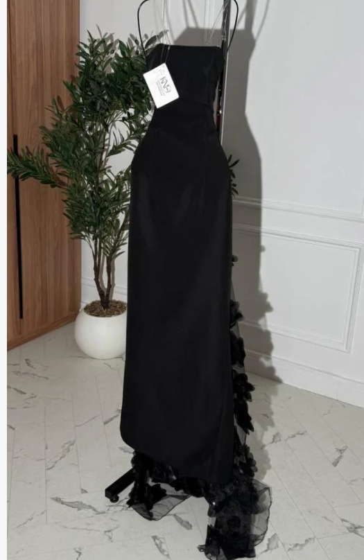 إن فستان سهرة أسود مع ذيل ورود يترك خلفه صدى من الدهشة والسكينة، فمن مواصفاته:
