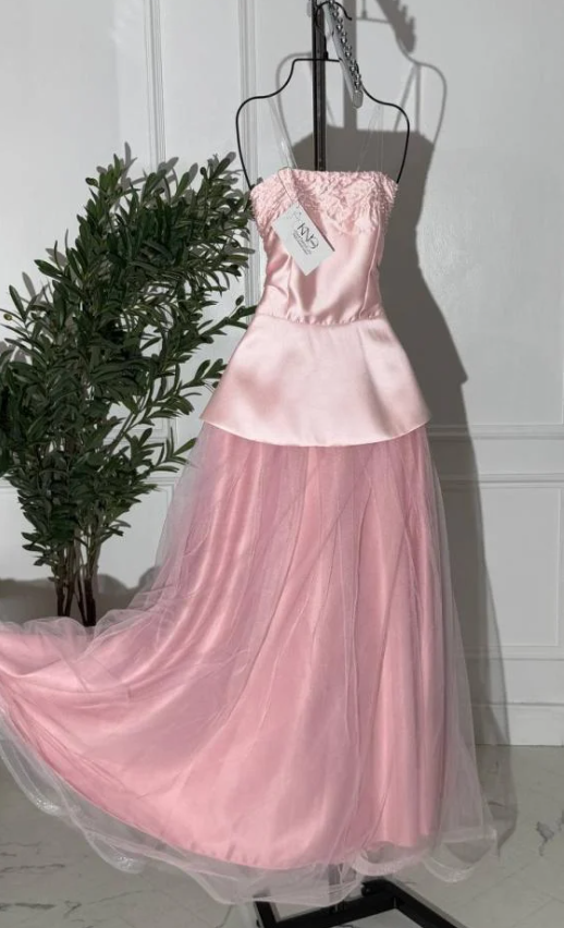 4- فستان سهرة لحمي باربي بتطريز زهور ناعمة وفتحة أمامية