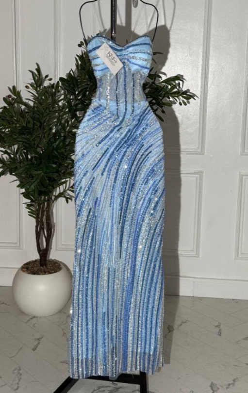 حين ترتدين فستان سهرة سماوي طويل مع شك بأكمام مكشوفة تشعرين وكأنك موجة بحر مُتلألئة تنعكس عليها أشعة القمر، فتأسرين الأنظار بجمالكِ الهادئ ورونقكِ المتفرد، فمن مواصفاته: