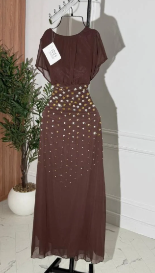 إذا كنتِ ترغبين بإطلالة ليلية تفيض بالأناقة والتميز، فهذا الفستان البني الطويل هو خيار مثالي لكِ. تصميمه الأنيق وتفاصيله الفريدة تجعله قطعة لا تُنسى في خزانة السهرات الخاصة بكِ.