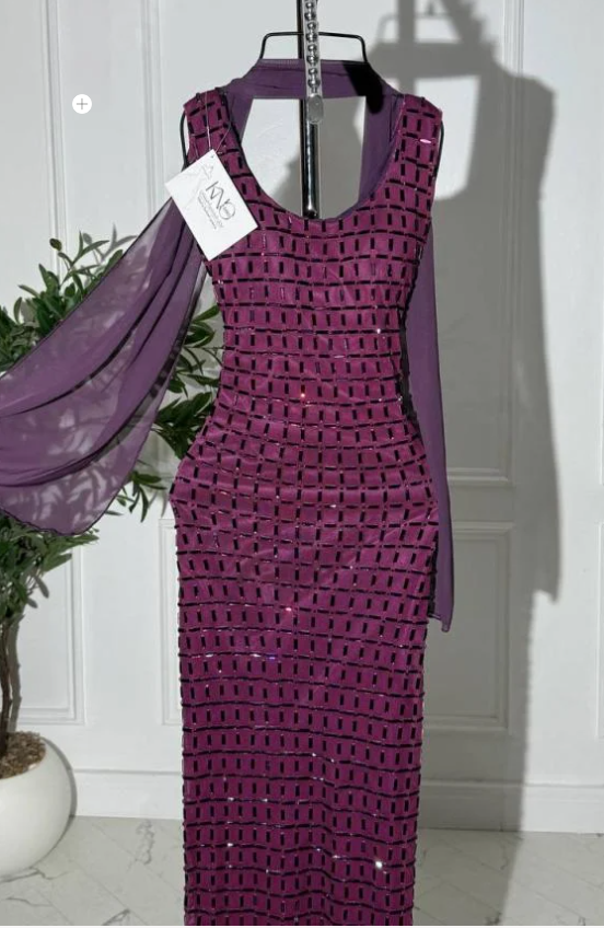 فستان سهرة مرايات على أرضية تل استرتش بنفسجي ملوكي