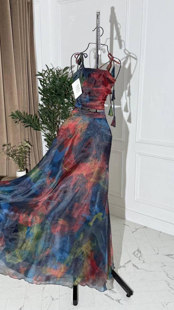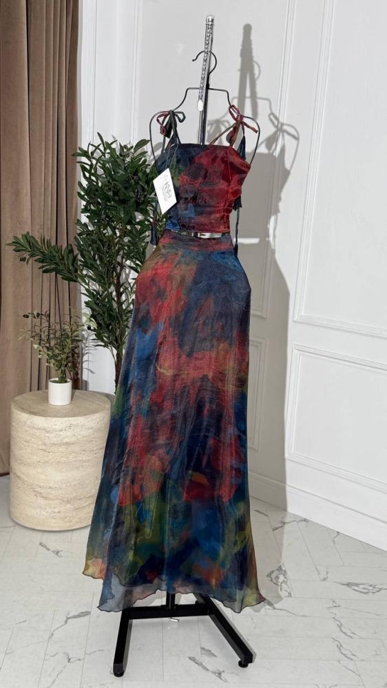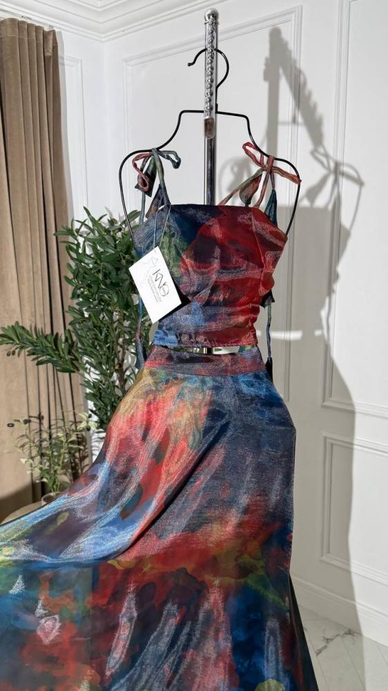 • طقم مكون من قطعتين، بلوزة بطول 14 إنش وتنورة بطول 44 إنش، مما يمنح إطلالة أنيقة ومميزة.