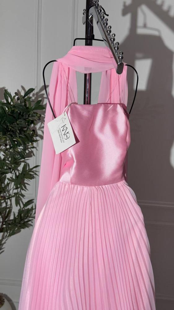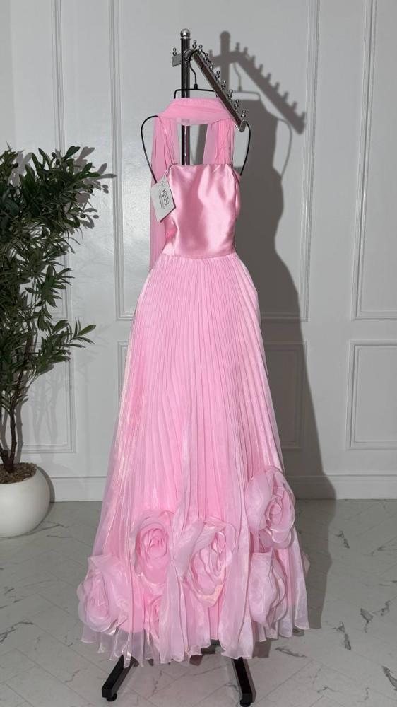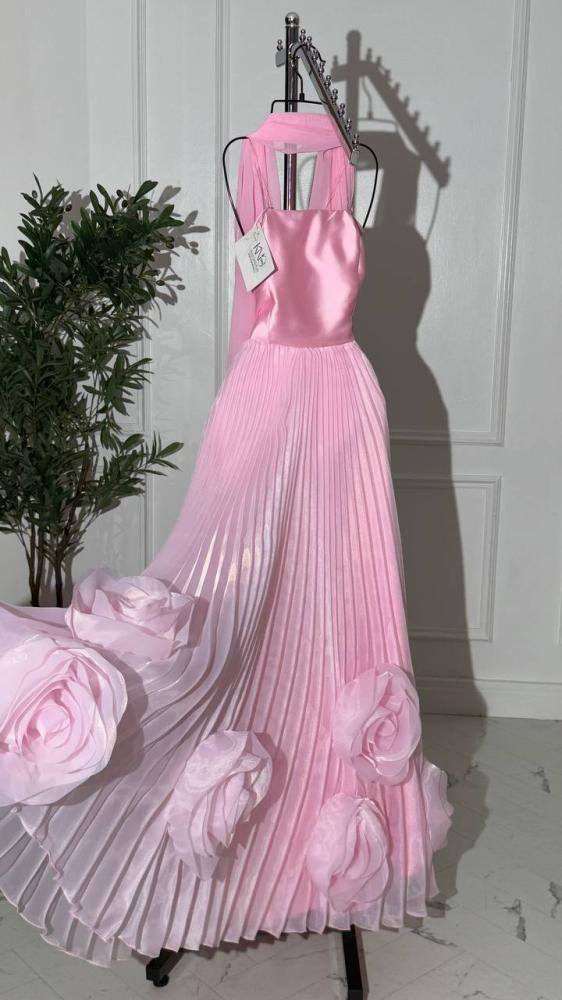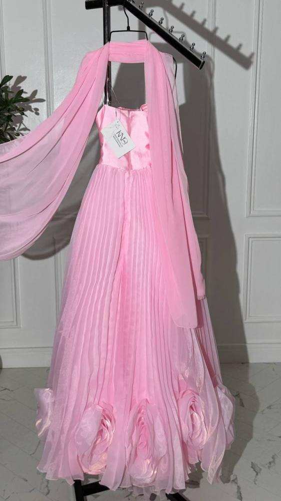 فستان سهره بينك ميكادو مع اورجنزا بوليسية وورود