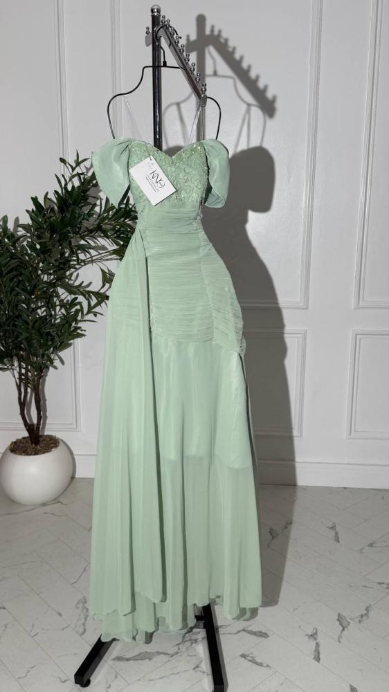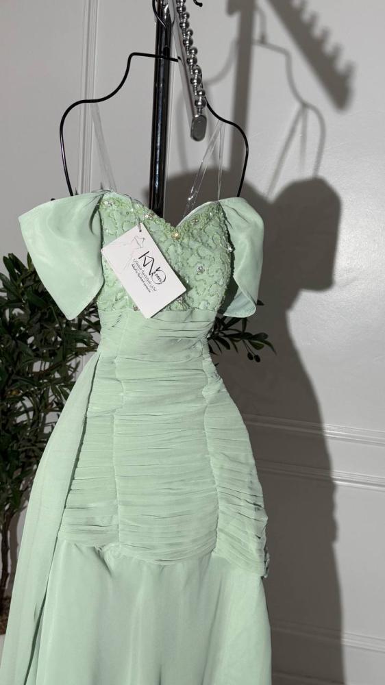 فستان سهره تفاحي جورجيت مع تطريز مباشر