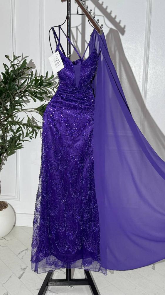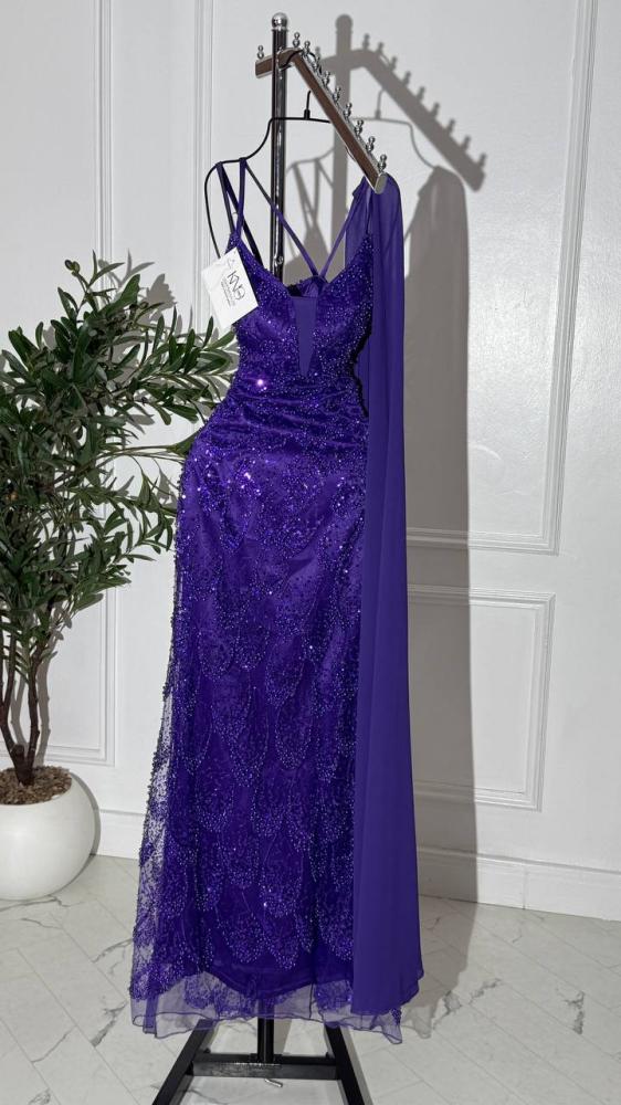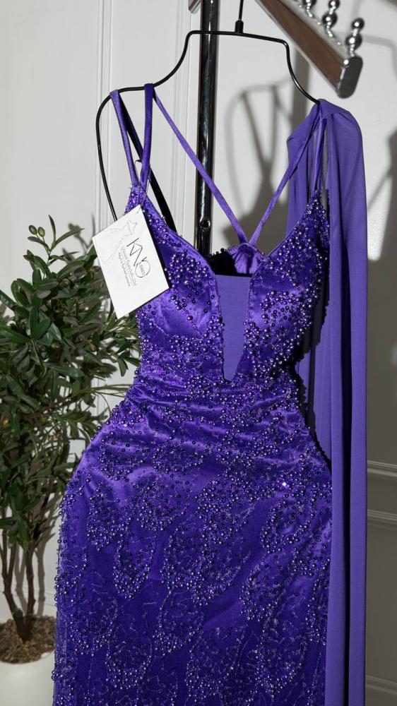 فستان سهره ليلكي لول فاخر مع جورجيت