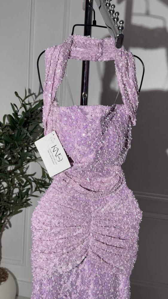 فستان سهره موف دانتيل على لول وكردانة