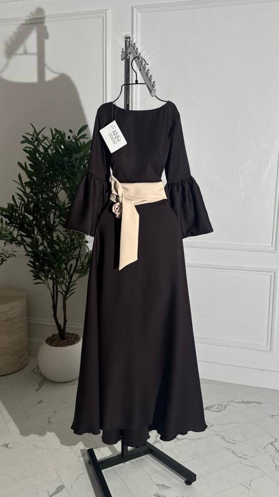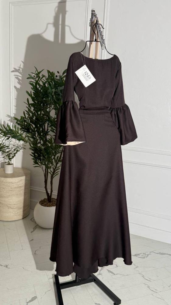 يتميز هذا الفستان السواريه البني بتصميم راقٍ وفاخر يناسب المناسبات الخاصة والسهرات.