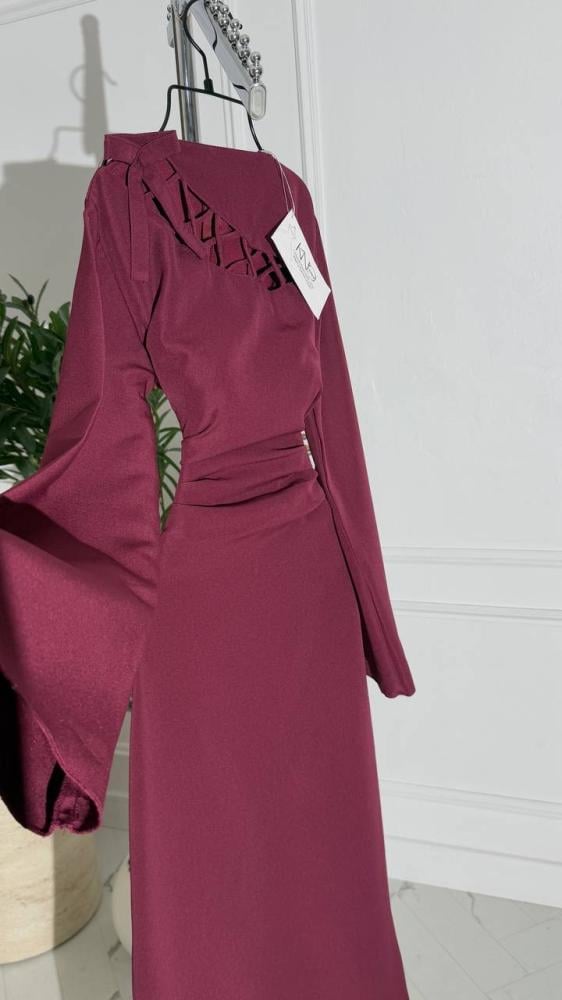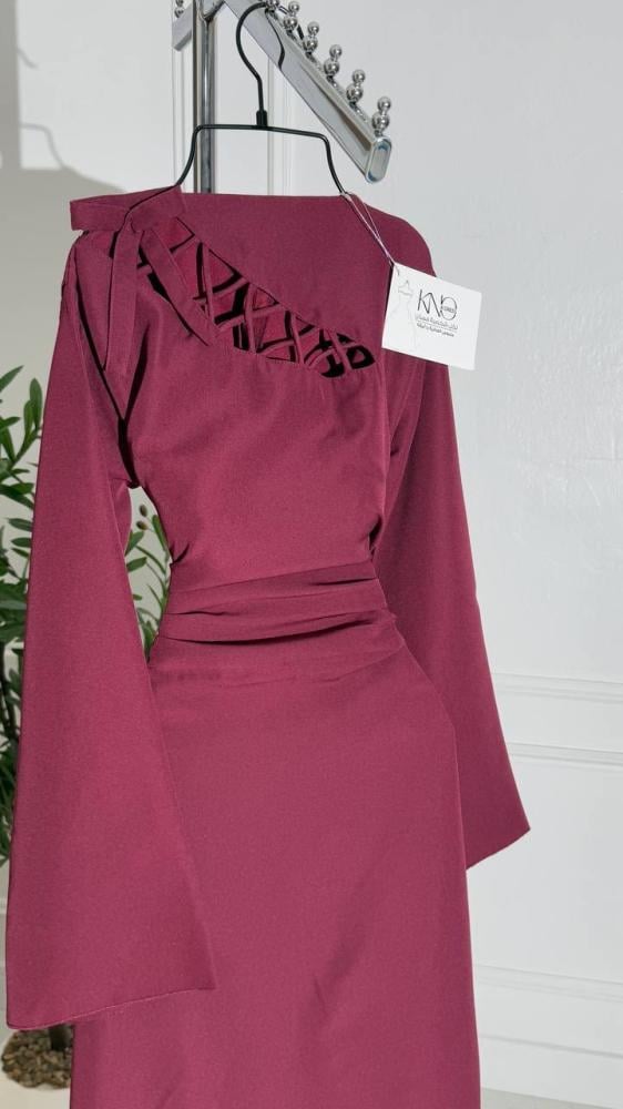 • يتميز بتصميم أنيق مع تفاصيل مقصوصة على الكتف الأيسر وأكمام واسعة، مما يمنحه مظهرًا عصريًا ومميزًا.