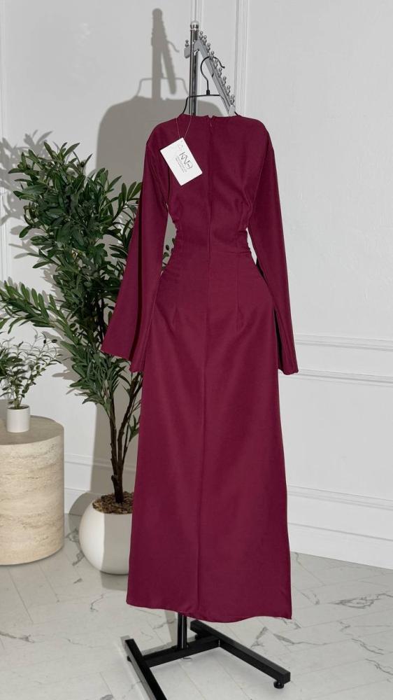 فستان طويل بأكمام مع فيونكه بالأعلى