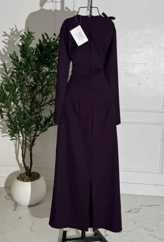 • اللون أرجواني داكن يمنح الفستان طابعًا راقيًا يناسب الإطلالات المسائية.